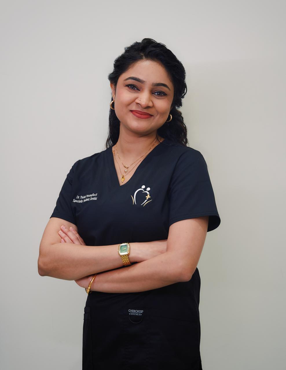 Dr. Thulasi is a highly skilled Specialist Pediatric Dentist with a Master’s degree in Pediatric Dentistry and extensive experience across top medical centers in Dubai, Abu Dhabi, and India. She has also served as an Assistant Professor in Pediatric Dentistry, bringing academic excellence into clinical care. Dr. Thulasi is certified in Nitrous Oxide Sedation and PALS, and specializes in managing children with dental anxiety, special needs, and complex dental conditions. Her expertise includes preventive care, pulp therapy, space management, early orthodontic interventions, and trauma management. With a compassionate and evidence-based approach, she is dedicated to improving the oral health and well-being of children and their families.